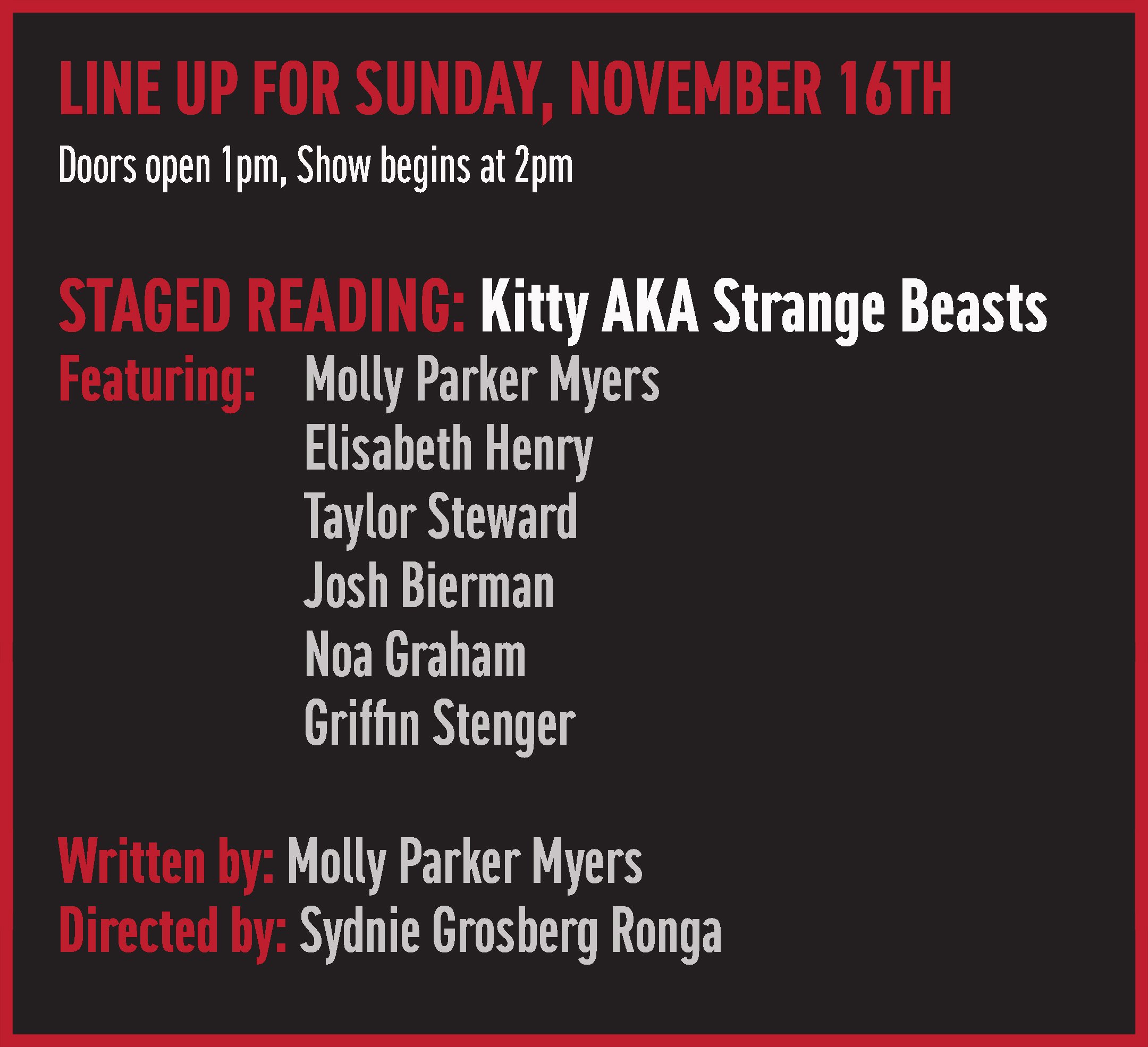 It’s opening weekend at Barnside LIVE! Enjoy a staged reading of Kitty AKA Strange Beasts.